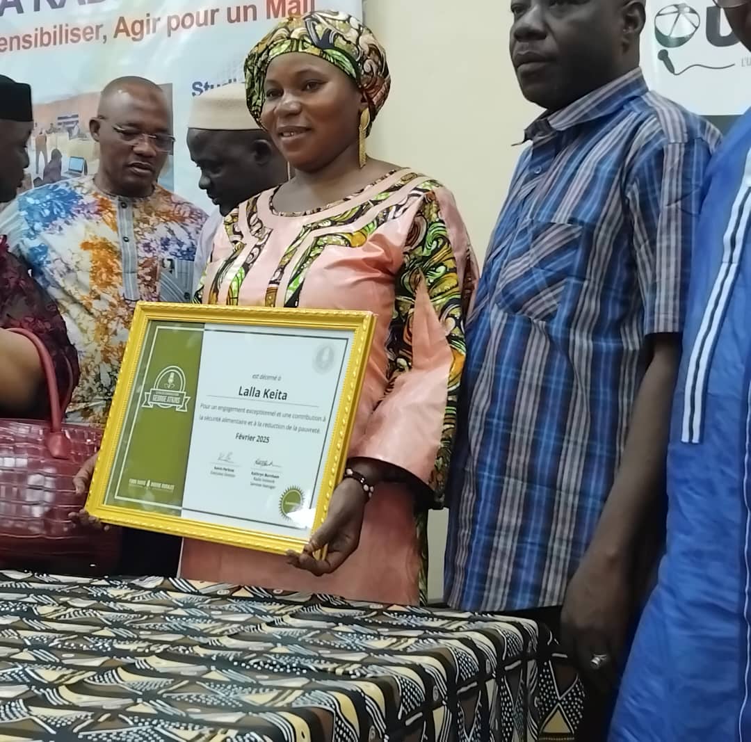 La journée a été clôturée par la remise du prix international à l’animatrice de la radio Bèlèkan de Kati, Mme Lalla Keïta pour son engagement exceptionnel et une contribution à la sécurité et à la réduction de la pauvreté. La lauréate réagit : « je suis contente de recevoir ce prix car, cela m’encourage à aller plus loin, je profite de l’occasion pour souhaiter une bonne et heureuse fête à tous les professionnels(les) de radio à travers le Mali et le reste du monde », a-t-elle témoigné avant de soutenir que la radio est un outil efficace au développement du toute une nation.  Ce prix a été décerné par les responsables des radios rurales internationales.