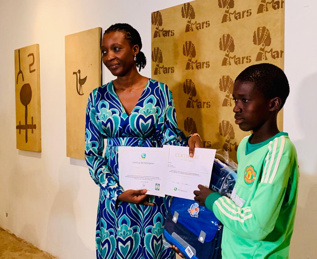 Les lauréats du 7ème concours international de dessin pour l’amour de la paix, organisé par le groupe international des femmes pour la paix (IWPG en anglais) ont reçu leurs cadeaux financés par WILDAF-Mali des mains des conseillers des Ministères de l’Artisanat, de l’Industrie hôtelière et du Tourisme, du représentant du ministre de la Refondation et de la Cohésion nationale, du Directeur du Musée national et de la représentante de la Galerie Medina. La lauréate Salimata Kathiery Coulibaly de la catégorie primaire a peint un tableau qui parle de la paix. Elle s’est dite très heureuse de son travail et a promis de continuer à faire toujours des efforts pour mieux informer ses pairs sur l’importance de la paix.